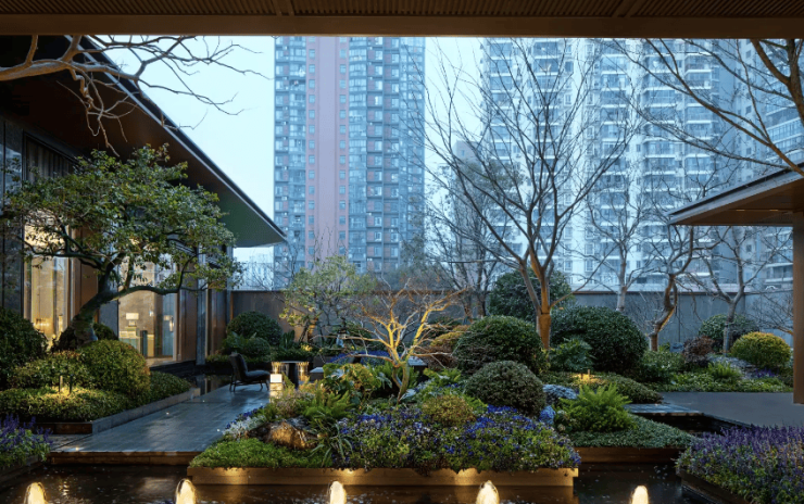 小区特色:建筑采用宽檐大屋顶现代艺术风格,质感涂料搭配金属铝板及腰线,阳台处运用同色系玻璃栏板,辨识度高。小区有酒店式入户大堂搭配风雨连廊,园林景观精致,有小桥流水等景观元素,营造出舒适的居住氛围。
