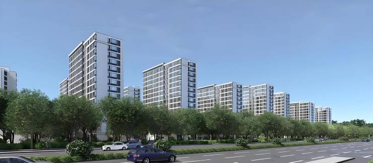 现代简约建筑外立面采用真石漆与金属线条搭配,户型方正通透,以 73㎡两房为例,南向双开间阳台,全赠送设备平台可改造为书房;97㎡三房实现南北通透,主卧套房设计(含独立卫浴),部分房源赠送飘窗。