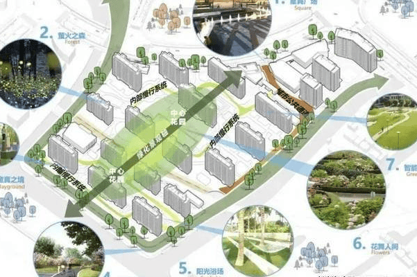 社区整体景观通过多维空间居住体验、全景化的生活模式、人性化舒适居住环境三大设计亮点,拉进人与自然的关系。设置了“星舞广场”、萤火之森、童真之境、骑行江湖、阳光浴场、花舞人间以及智能步道7大主题景观共同勾勒出全场景沉浸度假生活,在自然间奔跑嬉戏,会客休闲,每个人都能在这个广阔丰饶的世界里,与自己真诚相对,与家人亲密相依,与志趣相投者愉悦共鸣,让生活以另一种形式自然流淌。