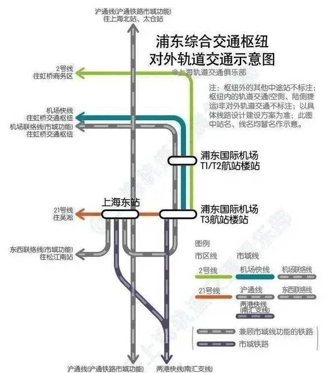 同时上海东站规划接入沪通铁路(衔接南北沿江铁路)、沪乍杭铁路(规划中),通过市域线网络转换,接入沪苏湖铁路、沪杭城际并衔接沪宁、沪杭通道。同时,上海东站还将通过上海机场联络线(在建中)与上海虹桥站连接,并接入两港快线(在建中)、铁路东西联络线(规划中)等线路,搭建“5条市域线+2条市区线+多条局域线”的布局。