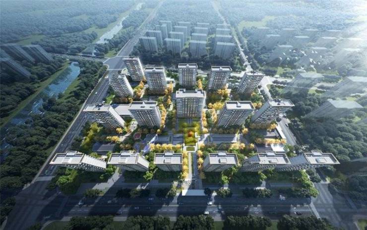 建筑风格:采用现代简约与新中式融合的风格,浅灰色真石漆外立面搭配金属线条,最大楼间距达 60 米。