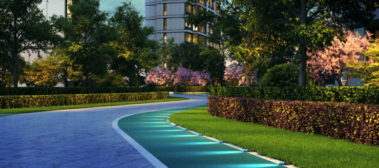 约750m的夜光跑道,就算是在夜间运动也安全无碍,为热爱运动的业主提供了专门的运动场地。