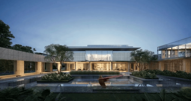 无界会所:约 628㎡的无界会所,内部配置中央空调和壁炉,Prada 绿奢石材料配合镜面水景和度假风绿植,营造出酒店式度假氛围,为业主提供商务会晤、运动切磋、邻里交流等空间。