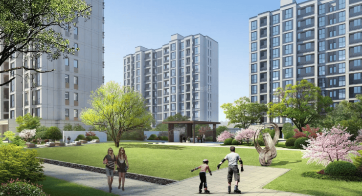 社区内部:双天然河道环绕,2 万方生态园林,串联全龄活动场地;小高层与洋房分区管理,私密性强;