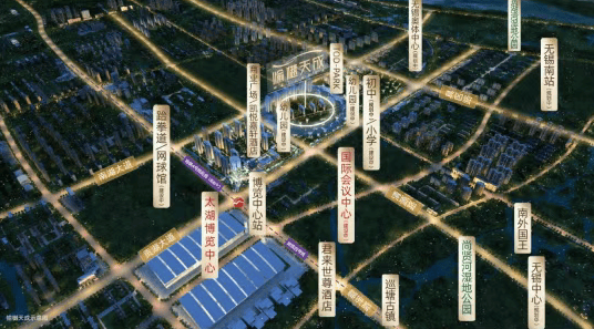 教育配套:直线 3km 范围内有 14 个幼儿园、8 个小学,如无锡市华庄中心小学、无锡市太湖实验小学等,以及 3 个中学,包括无锡市江南新城实验中学、无锡市华庄中学5。