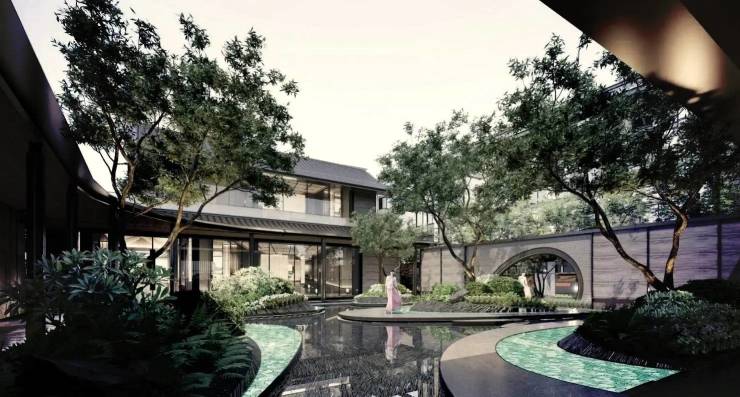 规模指标:占地约 7.9 万㎡,容积率仅1.3(低密标杆),绿化率 30.01%;规划 36 栋 3–10 层建筑(无高层干扰),共 819 户;车位 1159 个,车位比 1:1.4;社区采用宋式美学 + 虞山十景灵感,打造 “一纵三横七境十景” 园林,亭台水景、松石造景,外立面融合金属线条与浅色系石材,质感高级。