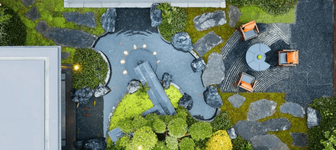 建筑风格:采用现代新中式风格,以宋式府邸的建筑审美为蓝本,古朴的鱼鳞瓦搭配中式意境的重檐顶,同时借鉴皇城根下屋顶铺设的鱼鳞瓦,描绘出具有大家风范的当代居所。