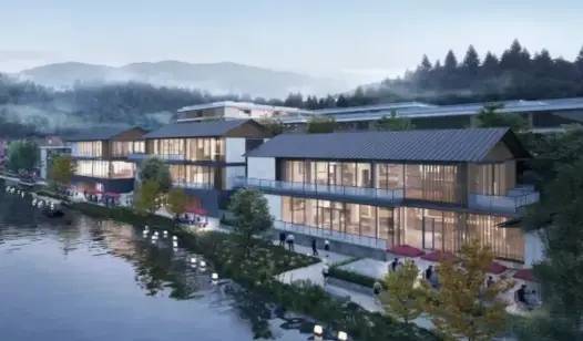 景观特色:融合东钱湖湖山气韵,采用中式坡屋顶与大面积玻璃结合的设计,超大窗墙比优化采光,实现湖景与自然的融合。