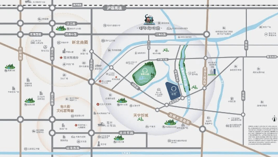 休闲:周边 3km 范围内有 16 个公园,北侧有紫荆公园,东侧有横塘河湿地公园,生态环境优越。