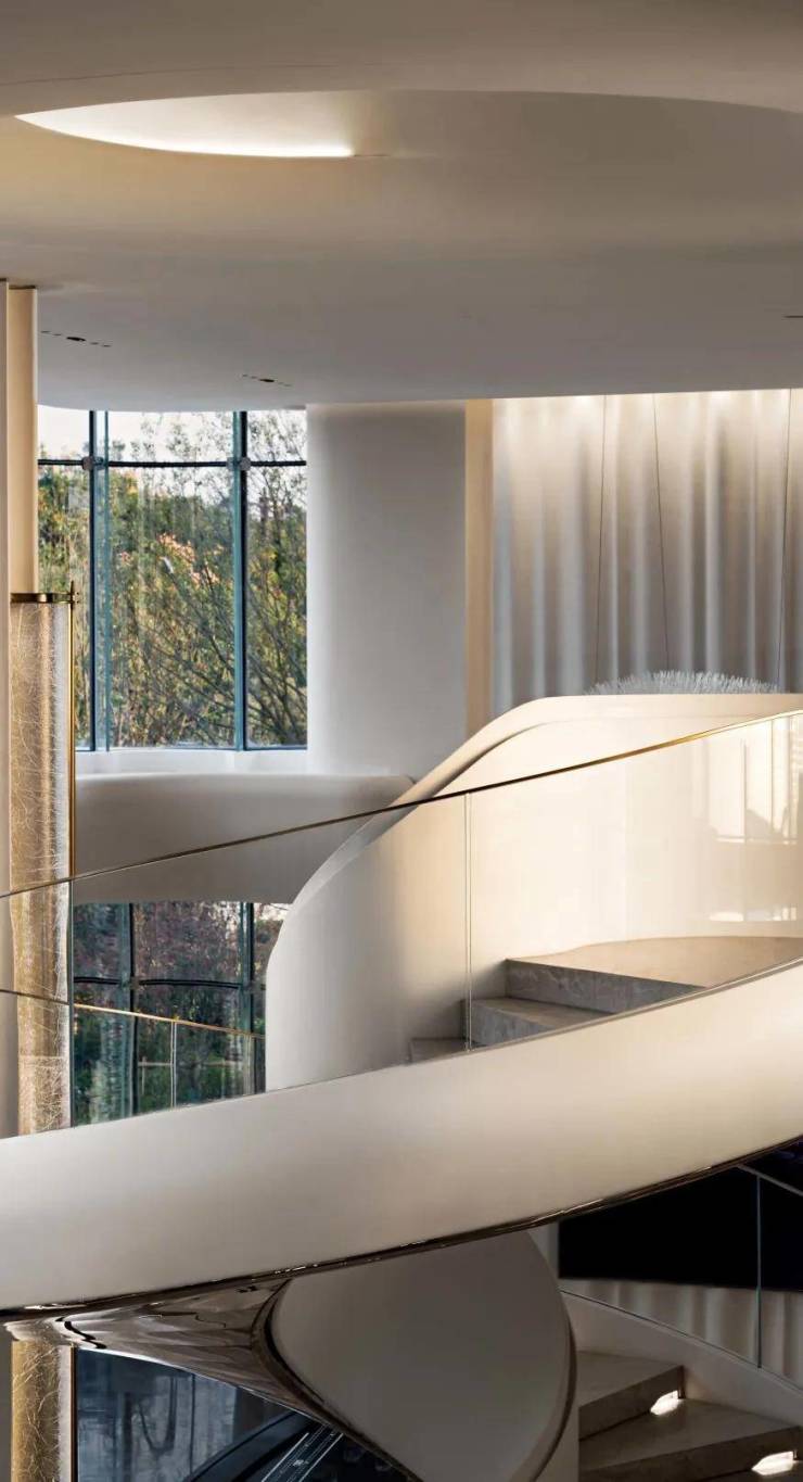 灵动的艺术楼梯,呈现出一种螺旋向上的生长姿态,在功能和优雅之间达到平衡。形成轻盈而灵动的立体感,运用玻璃和金属的元素,打造璀璨银河的既视感,与顶部的圆形造型相呼应,呈现出日月同辉的视觉盛宴。