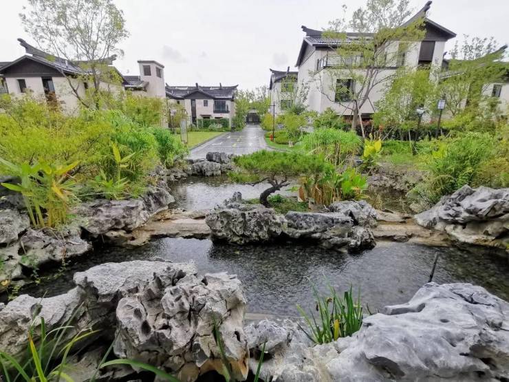 基础参数:开发商上海方弘置业;占地约 2.19 万㎡,建面约 3.32 万㎡,容积率1.0(低密稀缺),绿化率 35%;共 57 户纯联排,167 个车位,车位配比约 1:3;物业费约 4.2 元 /㎡・月;白墙黛瓦中式立面,社区内有亭台、叠水、回字纹装饰等中式景观。