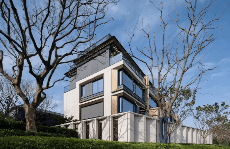 建筑风格:汲取广富林文化精髓,塑造 “新江南学院派” 风格建筑。外立面采用渐暖色石材、银灰色及香槟色铝板和涂料组合,彰显高端品质。