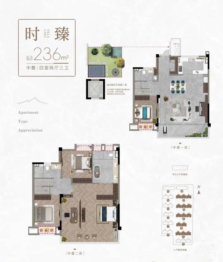 【产品类型】建筑面积约103-120㎡墅境洋房/建筑面积约165-236㎡静美墅居