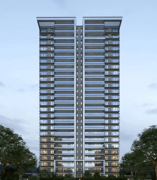 建筑设计:特邀知名建筑单位柏涛 PTA 设计,沿袭国际高端建筑调性,采用大面积玻璃幕墙,搭配深灰色横向线条,层次分明,细节丰富。