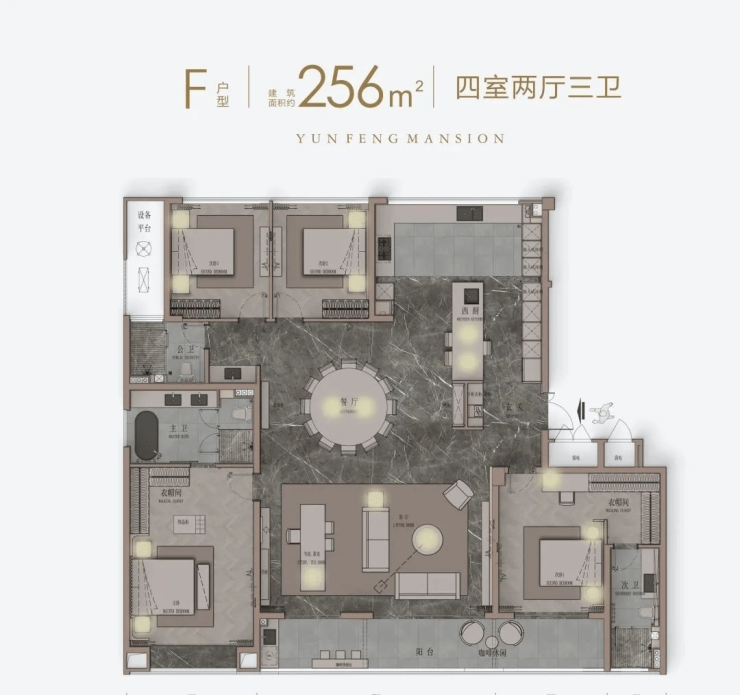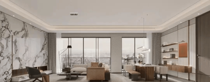 云峯ONE在约256㎡奢居的设计中,不断探索如何平衡社交与居住的关系,为居者营造良好的家庭互动氛围。
