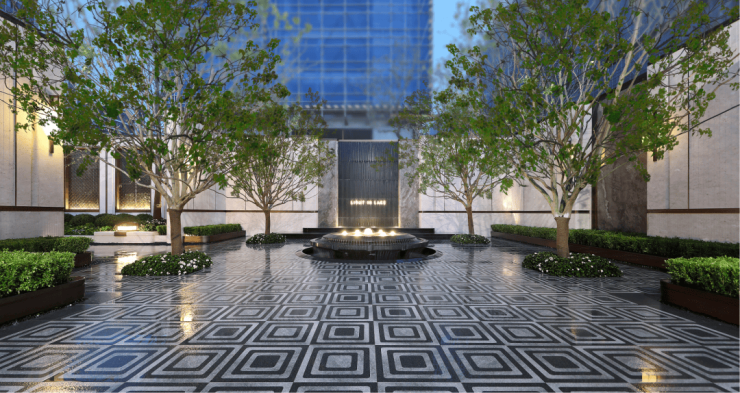 步入园区,所见即所得。约35%的绿化率,通过“岛屿式”园林设计,将丛生乌桕等大型乔木与多层次灌木、花卉巧妙嵌套,营造出交付多年社区方有的丰沛绿意与成熟质感。