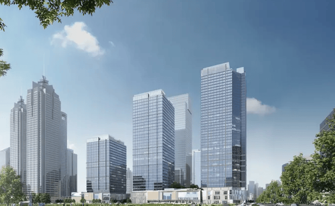 建筑规划:总建筑面积约 26 万方,分为东西地块。东地块由 4F 商业裙楼、40 年产权中塔项目、70 年产权东塔项目组成;西地块规划一栋约 107 米的商业办公楼。