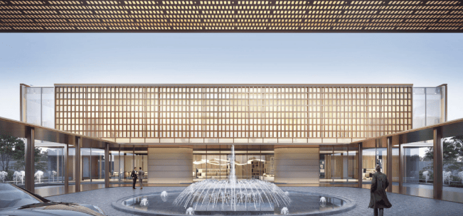 建筑风格:采用上海宝格丽酒店同款立面,融合海派风情,搭配 “香槟金” 配色与极简线条,大面宽设计,外立面晶莹剔透。