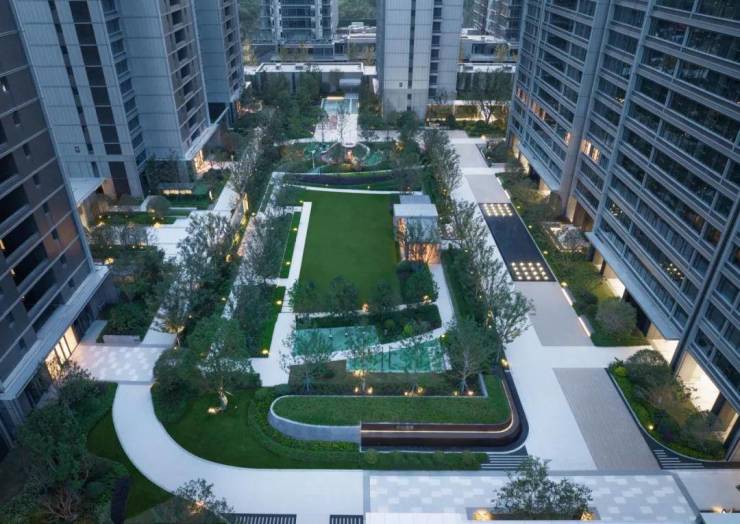 设计师从苏州人重要记忆提取春(花) 夏(雨) 秋(月) 冬(雪)四季景象融入其中,打造四个宅间花园。中心绿地围合的精奢入户大堂,实现了“在花园中”的日常生活。