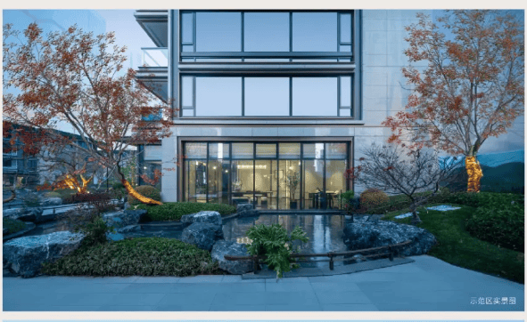 景观设计:园林取韵于王维《辋川图》,打造镜面湖光、叠水造景、拱桥亭台等景观元素,营造东方美学谧境。