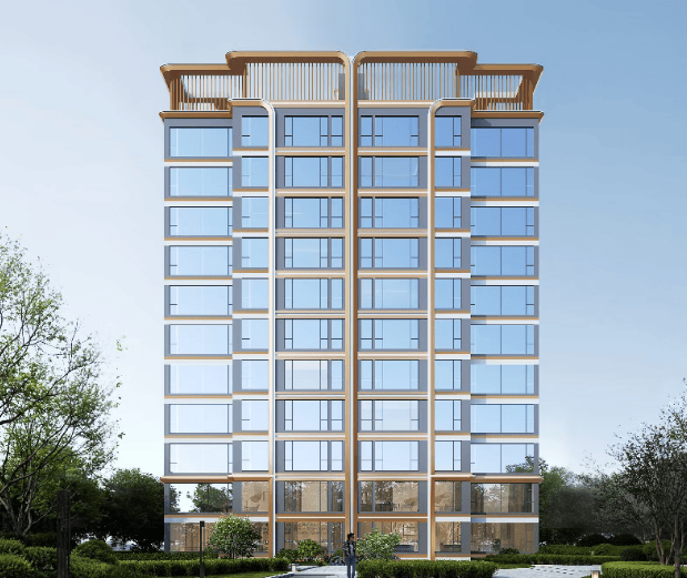 项目总建筑面积约9.44万平方米,容积率仅1.8,规划总户数342户,属于稀缺的低密社区。产品方面,高层户型为约129㎡和143㎡的大四房,叠墅户型面积段为约190-224㎡,主打三开间朝南、四面全铝板外立面、专梯入户、实体围墙庭院及凌空花园等高端配置,强调居住的私密性与品质感。