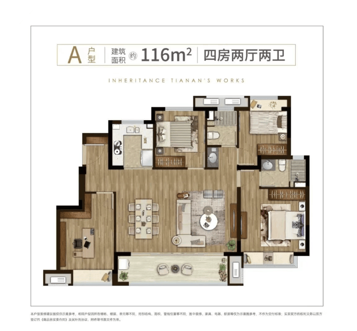 面积区间:有建面约 93㎡的实用 3 房 2 厅 2 卫户型和约 116㎡的宽敞 4 房 2 厅 2 卫户型,可满足不同家庭结构和居住需求。