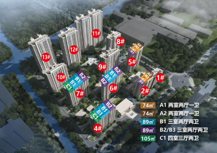 在售户型:75㎡-89㎡-105㎡