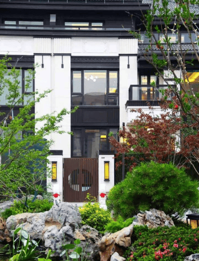 风格:现代中式合院,新中式园林、假山流水、庭院礼序