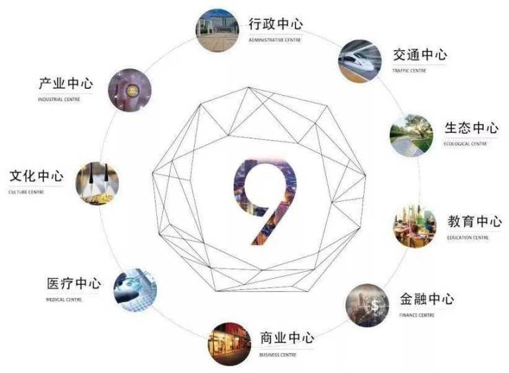 然后,配套优质。汇集9大中心:1行政中心、2交通中心、3生态中心、4教育中心、5金融中心、6商业中心、7医疗中心、8文化中心、9产业中心。