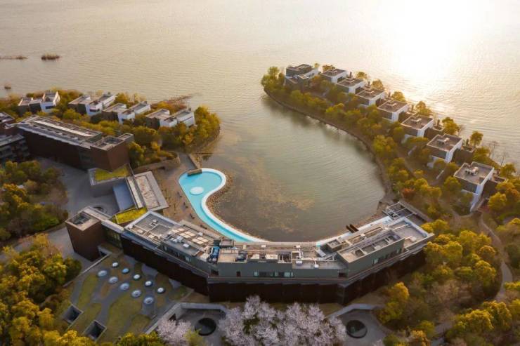 半岛总面积约24.39平方公里,其中内湖水域面积达7.8平方公里,让人仿佛置身于一片绿意盎然的世界。项目的总面积近20万方,总投资达35个亿,不仅是一个养生憩所,更是一个集东方智慧与西方科学于一体的正念生活体系。