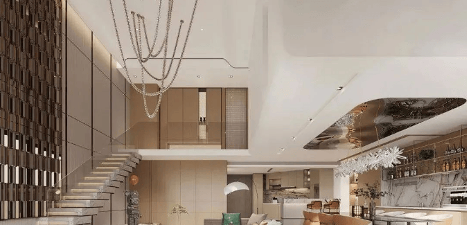 空间设计:有面积约 126-195㎡的行政云邸,还有 148-183㎡稀缺 loft 复式,层高 5.6 米甚至有的达到 5.8 米,空间使用率约 200%,买一层送一层,打造出双倍的宽敞空间。