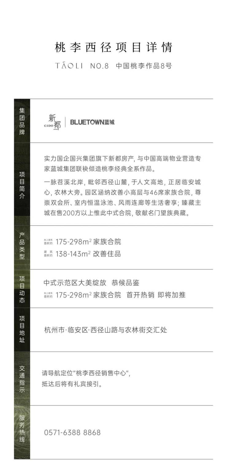 从第一眼的喜欢,到越了解越耐看,桃李西径中式合院长在很多人的审美上,它由临安实力国企国兴集团旗下的新都房产,携手蓝城集团,汲取桃李春风中式合院为灵感,并把它放在了临安城心,以超越自我、超越周期的作品态度经验,打造更经典、也更纯正的46席中式合院,是卖一席少一席的存在。