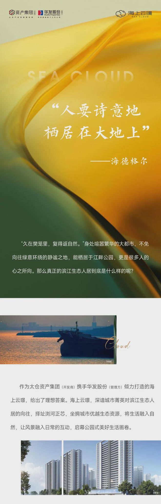 两大国匠联手,以1+1>2的实力,倾注数十载精工造诣与人居智慧,打造滨江活力住区——海上云璟。怀揣着对生活的深度精研,以自然、社交、舒适为设计灵感,为居住打造一个有文化气息、有场所记忆、有宜人尺度的,面向未来的“滨江活力住区”。