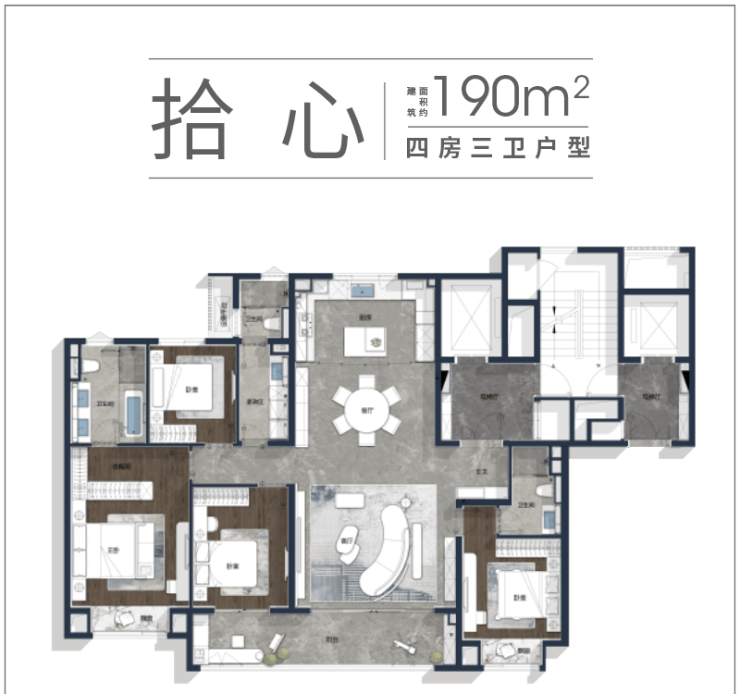 拾心 | 建筑面积约190㎡四房三卫户型