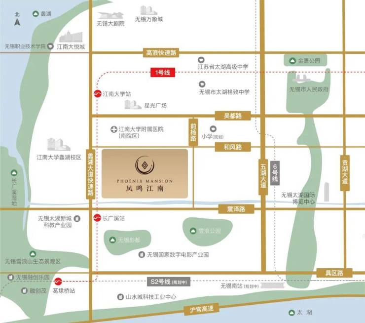 历史文化,是滨湖的灵魂;生态环境,是滨湖的底色;科创活力,是滨湖的亮色。作为无锡新一轮城市总规确立的中心城区,滨湖引领着“靓丽太湖湾、活力科创带”的历史机遇。无锡凤鸣江南,择址太湖湾科创带和太湖108廊道的重要节点,依托“世界级魅力湖湾、长三角创智之都、无锡城市新核心”优势,致力于打造高品质住区标杆范本,重塑滨湖生活的影响力。(*信息来源:无锡滨湖自然资源和规划 无锡市滨湖区国土空间总体规划