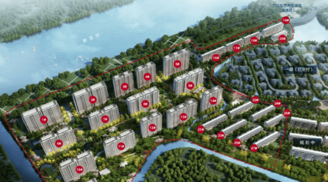 园林景观:项目总占地约 1525 亩,地处新、老浏河围合之内,社区内建有约 6000㎡巴比松艺术生活馆、约 13.5 万方滨河景观公园、约 5000 方岛心湖。
