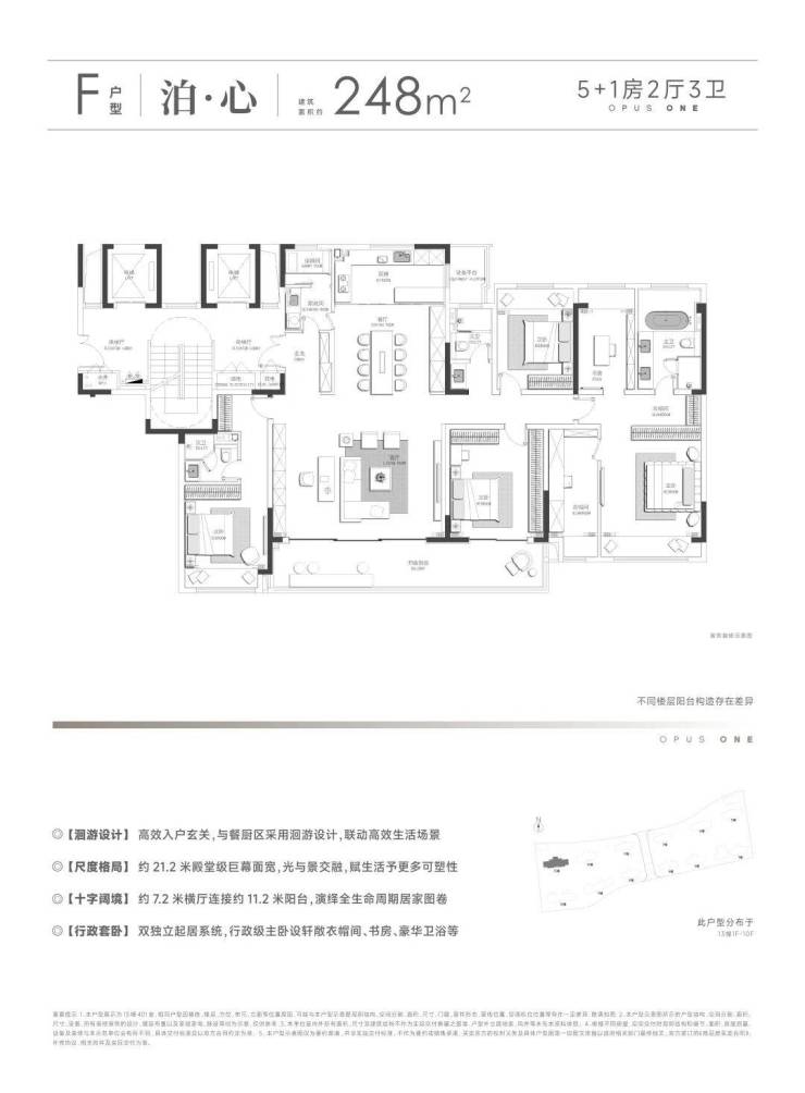 户型起步165㎡,最大248㎡,定位纯粹的低密大平层社区。每个户型都是双联阳台,最大的尺度做到了11.2米。
