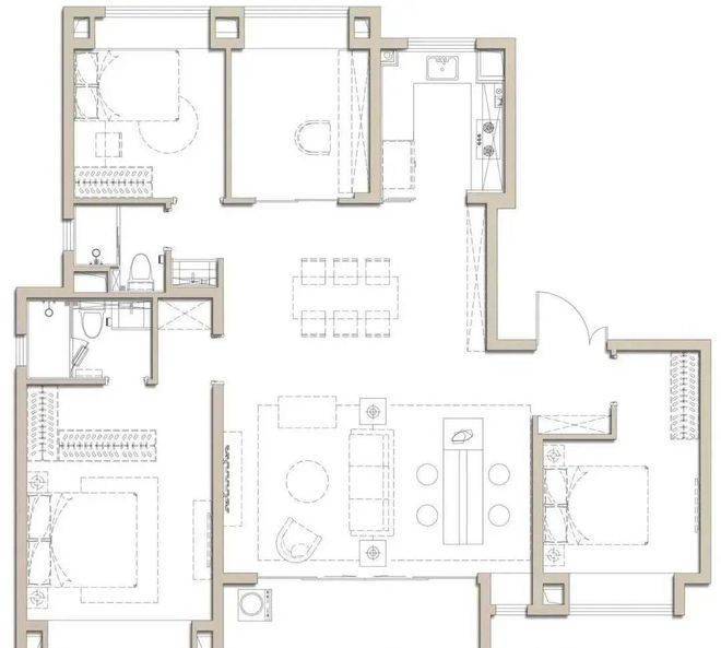 建面约100㎡是个典型的飞机户型,全明户型南北通透,独立玄关实用美观,几乎无过道浪费,延伸了空间的尺度。