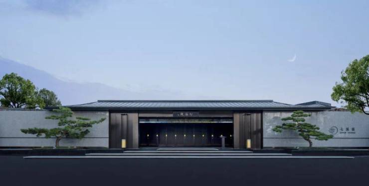 昭示性主入口沿用建筑线条,雅致细节体现中式极简的韵味。大体量门头先声夺人,两侧造型松结合迎宾水景共同构成中心对称的礼序空间,东方礼序之道彰显千年尊崇归家仪式。