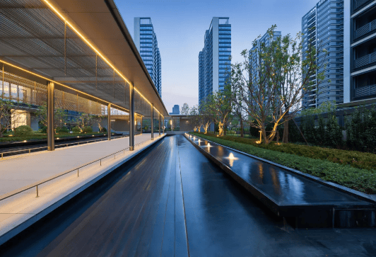 景观资源:L型双水岸环绕,营造天然静谧屏障;约10000㎡中央花园全冠移植名贵树种,搭配风雨连廊、全龄主题架空层,实现“户户推窗瞰景”,景观资源均好性高。