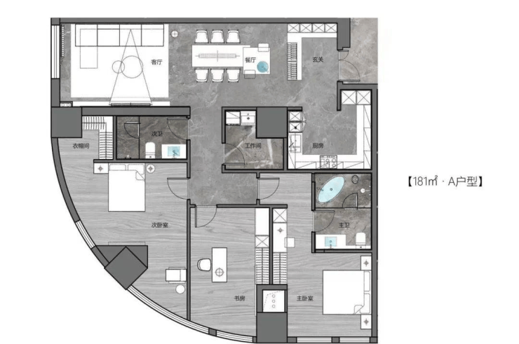 501室建面约181㎡户型图