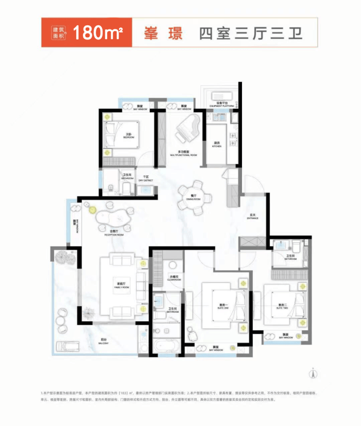 建面约180㎡户型为例: