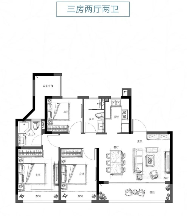 户型面积:主力户型建面约 98-188㎡,有 3 室 2 厅 1 卫、4 室 2 厅 1 卫等多种户型。