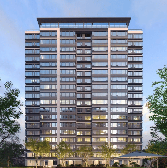 建筑风格:在立面主体上,以浅灰色金属保温一体板为主,配合灰色铝合金线条,搭配局部真石漆,整体形象简约质感;南阳台统一封包交付,采用三玻两腔中空玻璃。