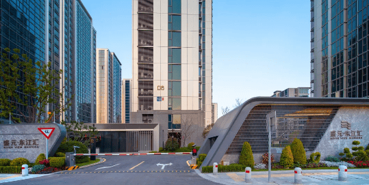 美学立面:采用大面积玻璃幕墙、金属铝板与天然石材组合的全干挂建筑立面,搭配高级灰色调,打造通透纯净、硬朗简洁的国际化形象。这种设计不仅提升了建筑的美观度,还具有抗老化、防空鼓、防脱落等优势,确保建筑立面长期保持良好状态。