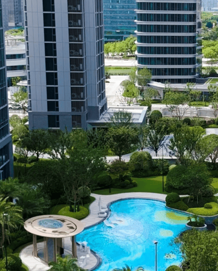 星空中央美池与艺术廊架:匠心打造约400㎡星空中央美池,与周边艺术廊架、层次园林交相辉映,将水的灵动、光的艺术与人的休闲完美融合,成为社区的精神坐标,营造出度假般的氛围。