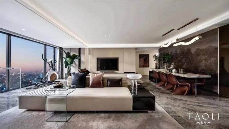 透过客厅的全落地玻璃窗,各个卧室甚至厨房的全景玻璃,在家中就可以赏城市风光、观雨落花开、看四季变换。