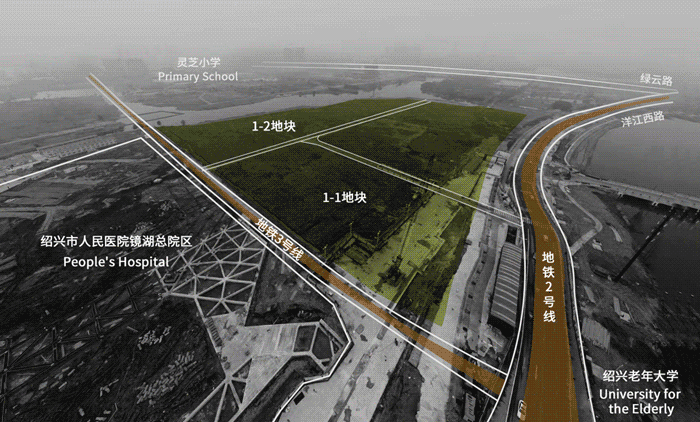 1、基地东侧正在建设的是绍兴市人民医院镜湖新院,医疗资源雄厚;2、北侧地铁二号线正在施工,有人行口接入场地,规划三号线东侧南北向通过,交通资源充分;3、委托方期望将住区、养老公寓、商业、月子中心、医疗美容、运动康复等业态糅合进项目中,业态多元复合。