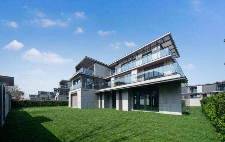 小区概况:项目位于杭州会展新城核心区,直线距离钱塘江仅约 20 米,毗邻亚运主题滨江公园及潮汐观景台。小区占地面积约 5.94 万㎡,总建面约 3.27 万㎡,容积率低至 0.55,绿化率为 41%,规划有 87 席纯低密墅居,包含 37 栋建筑。