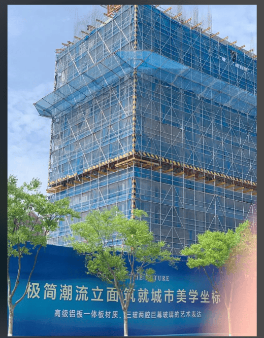 建筑风格:采用现代风格,以灰白色石材为底座,搭配大面积镜面蓝 LOW - E 玻璃,窗墙比超 60%,洋房屋顶搭配深灰色挑檐铝板,质感轻奢。